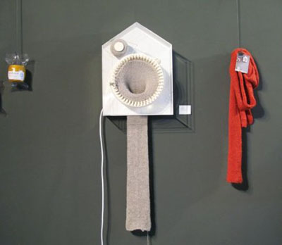 看到這樣的無厘頭創意,您是不是也覺得世界特別的美好呢?這是一個會織毛衣的鐘表,或者你也可以叫它能看時間的織布機,總之這個看起來很蠢的家伙能告訴你時間,而且您在春天把它掛在墻上的話,秋天的時候就可以有一條兩米左右的新圍巾了。我想設計師并不是簡單的弄出了這個無厘頭的東西,他是想告訴我們,時間的流逝的力量是多么的強大,反正我是被震到了。