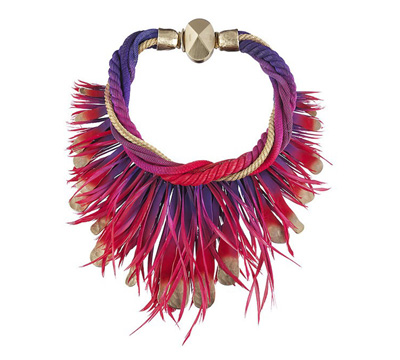 混合材質的疊加運用:羽毛、水晶、貝殼、珠鏈等元件的混合,讓這些首飾配件立即變得鮮活和生動起來,呈現很強的立體感和空間感。