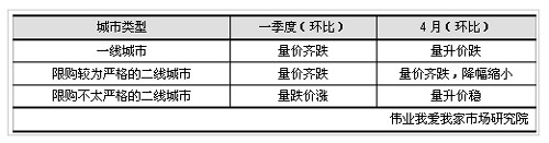 偉業我愛我家市場研究院表示,與一季度的成交特征相比,一線城市與限購不太嚴格的二線城市成交特征發生了明顯變化,原因主要有兩點: