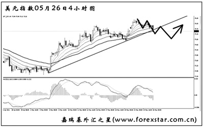 通過技術面分析,可以看到美元指數延續反彈走勢再度創出新高,MACD的頂背離角度明顯,多頭動能持續減弱。目前美元指數在考驗圖中的上升趨勢線,若跌破,將向道氏低點支撐74.90一線發起沖擊。日線圖上看,此波美元的上行斜率較大,均線系統也被突破,在短線下調的走勢結束后,有望繼續上沖挑戰76.55的阻力。
