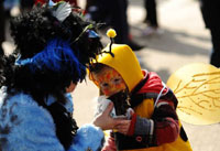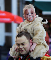 在這場狂歡盛宴中,我注意到不少都是全家出動,大人孩子從頭到腳都打扮得非常般配,看著那些可愛的親子裝,一家人其樂融融的樣子,頗讓人羨慕。雖說孩子是“上帝派來索債的”,但孩子也是上帝的恩賜,尤其是在生育率持續走低的歐洲國家,一個家庭因為孩子的到來而增添的樂趣是任何事情都不能比擬的。