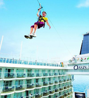 “海洋綠洲號”上擁有一個高科技“移動酒吧”,它可以在三層甲板之間上下移動,營業時間升空,結束營業后降下。喜歡刺激的人可以在船上體驗世界首條郵輪空中繩索的“飛人”感覺。而喜歡休閑的人可以在三個主題露天公園里曬太陽,或在各類餐廳里享用美食、咖啡。船上還有水晶頂棚設計的酒吧,入夜之后與親密愛人在此喝一杯,氣氛相當浪漫。
