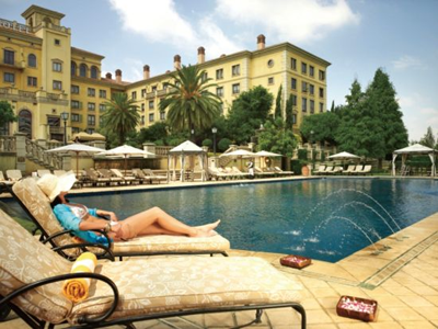這座精美絕倫的歡樂之城坐落在約堡的Fourways地區是集博采,休閑,娛樂和購物于一體的世界娛樂中心。擁有世界最一流的博彩設施,僅老虎機就有數千臺,項目還包括幾十家新餐廳酒吧,商店,壯觀的意大利風情廣場,音樂噴泉,南非南方太陽酒店集團的太陽廣場飯店,還有蒙帝賭場宴會廳和上千個新車位。亮點中的亮點則是南非最頂級飯店的之一的帕拉佐蒙帝賭場飯店。宏偉酒店建筑群具有復古的意大利托斯卡納式風格,以時尚和奢華為主題,體貼入微的人性化服務和世界最高標準的設備設施,提供給客人獨一無二的商務和休閑住宿體驗。
