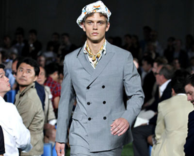 2012春夏的男裝秀場!不是每個設計師都敢讓男人們穿上明媚艷麗的小碎花,但是在設計師繆西婭·普拉達 (Miuccia Prada)