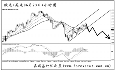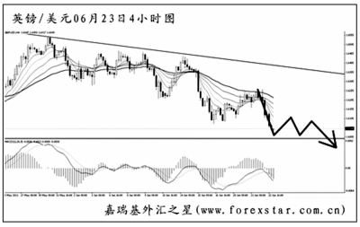 歐元兌美元小幅跌破了圖中的上升通道下沿,最近的下跌趨勢仍在延續。從日線圖上看,此輪歐元要挑戰的目標仍然為5月下旬的低點1.3970,跌破方可打開進一步的下行空間。雖然圖中的均線系統被小幅升穿,但由于此前的反彈力度始終不強,預計后市歐元將以震蕩下行的走勢為主。
