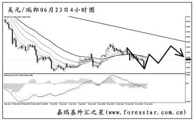 美元兌瑞郎的強勢有所收斂,短線在持續進行盤整。從大級別圖形上看,下降趨勢線和均線系統的壓制作用仍非常完好,反彈阻力重重。且即使突破了圖中的趨勢線,道氏高點的阻力0.8940也將發揮強勁的作用?紤]到瑞郎的持續強勢,目前做多美元兌瑞郎仍需謹慎。
