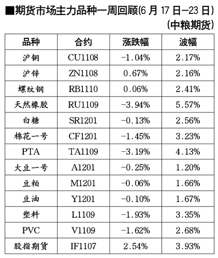期貨市場主力品種一周回顧[6月10日-6月16日]