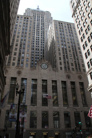 沿著芝加哥的“華爾街”——拉塞爾大街一路南行,當你發現自己無路可走的時候,就會看到一座氣勢宏偉的建筑聳立在面前,這就是全球最大的衍生品交易中心,也是這座城市引以為豪的坐標——芝加哥期貨交易所(Chicago Board Of Trade)。
