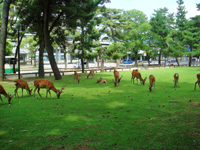 占公園最大面積的是草坪和樹木,此外,還到處可見閑散游走的梅花鹿。據統計,這里天然鹿總數約有1200只左右。傳說春日大社主神當年乘神鹿飛翔而至,現在這些鹿們便是延續了神鹿血統的后裔。