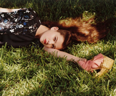 Miu Miu 2011秋冬大片邀請了美國新星Hailee Steinfeld擔任女主角,由攝影師Bruce Weber掌鏡,并將拍攝地點設為原始味道濃郁的鄉村環境。年僅14歲的少女Hailee Steinfeld在今年5月被指定為Miu Miu下一任的代言人,身著黑色裙裝,戴著墨鏡,蹬著高跟鞋站在鐵路旁的木樁邊,看上去酷勁十足!