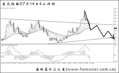 而美元并沒有受非農數據的影響而大幅下挫,目前仍處于一個日線的盤整局面之中。美指短暫突破了收斂三角形的上沿,并刺破了76.35的高點,但此后大幅下挫,短線主趨勢再度轉為向下。從力度交替的角度考慮,美元后市挑戰圖中下方趨勢線支撐的概率較大,一旦跌破,再戰前低72.65并非沒有可能。
