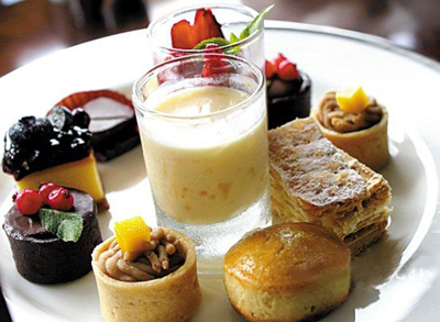 傳統英式松餅、法式拿破侖、藍莓芝士和杯形蛋糕等甜點