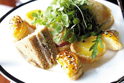 點心架被簡化為雙層,上層放咸點,像廣東風味的叉燒酥、紅豆酥、蛋撻和三明治等,而下層則是讓女生瘋狂的甜點,意式奶凍、法式拿破侖、藍莓芝士和楊枝甘露等。廚師還會根據時令變化,每周推出新的點心,讓?鸵膊粫械絾握{。