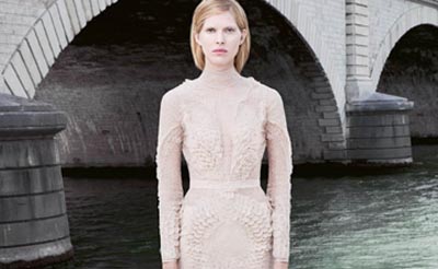 Tisci將這些不可思議的絕美作品帶到了巴黎的塞納河畔碼頭拍攝群像。這一畫面,仿佛是將理想世界搬到塵世之中,在寧靜的藍天白云映襯下,天使般柔美的華服與城市中的工業背景以及堅硬的鵝卵石路面形成最鮮明的對比。