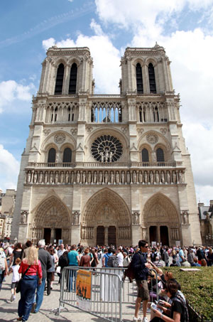 說到巴黎最著名的建筑,莫過于市中心塞納河西岱島上的巴黎圣母院。它也是歐洲建筑史上一個劃時代的標志之一。在它之前,歐洲的教堂建筑大多笨重壓抑;在它之后,以它哥特式的高直為藍本,歐洲的教堂開始擁有了輕巧的拱頂和敞亮的空間。