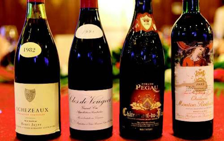 來自法國的名酒,從左至右:Henri Jayer, Leroy, Pegau, Mouton Rothschild