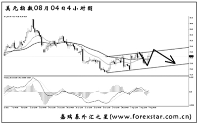 日本央行也在8月央行會議上一致維持0-0.10%的利率水平不變,并將量化寬松規模由10萬億日元提升至15萬億日元。日本央行表示,全體委員一致決定擴大量化寬松,經濟面臨的不確定性仍然很高,對日本經濟的下行風險需要更加謹慎,維持物價穩定則需要更長的時間。日本央行同時表示,歐元區債務問題的緊張形勢仍然存在,對美國經濟前景的謹慎情緒升溫,市場仍擔憂美國的債務問題。該利率決議公布后,美元兌日元強力突破4小時圖壓力線,短線上漲幅度一度超過了200點。