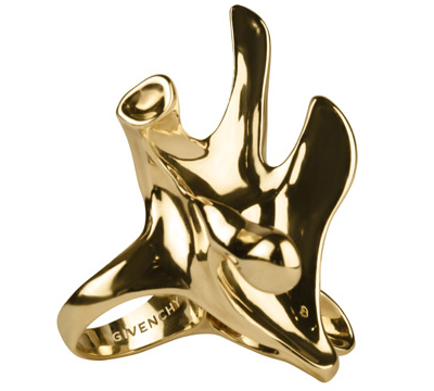 Tisci延續了去年秋冬高級定制系列的靈感,將蘭花的廓形與抽象化的骨骼完美融合,成就了這款光芒閃耀的珠寶杰作。這款戒指宛如一件可以佩戴的雕塑,在植物與動物、有機物體和礦石等元素的運用上顯得游刃有余。