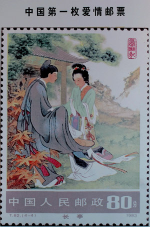 8月6日(七夕節),世界上第一個以愛情為主題的世界愛情郵票博物館在山東沂源縣牛郎織女旅游文化風景區正式掛牌開館,喜迎游人。該館展廳面積5000平方米,共分9個展區,收藏展出了中國、美國、英國、法國等136個國家和地區的3200余種20多萬枚愛情題材郵票,其品類之全,數量之大,令參觀者目不暇接!捌呦潯痹从谥袊爬系呐@煽椗膼矍閭髡f故事,沂源牛郎織女傳說已被國務院列入國家非物質文化遺產名錄。