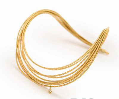 依照華洛芙一貫的珠寶制作傳統,無論是設計構想,還是設計草圖,都要經過無數次嘗試。但是這一次,卻不同以往!叭展狻表楁溡驗橐淮闻既坏臋C遇而有了它的全新面貌。當時,華洛芙的金匠正在修補一條因為保險箱門而被夾壞從而產生凹痕的項鏈。當陽光照進工作室的那一瞬間,那道凹痕反射出了璀璨炫目的光芒,這樣完美的光效讓金匠們驚嘆不已,于是,他們決定要將這個效果復制到一條全新的項鏈上面。經過多次實驗和設計調整,并且在一種新穎的纏繞技術的幫助之下,最后,他們創造出了這款全新的光彩奪目的華洛芙金絲編花項鏈。