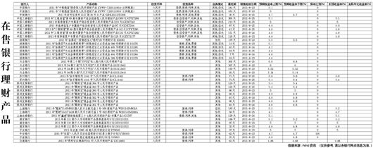 在售銀行理財產品[2011-07-29]