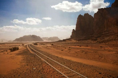 約旦瓦迪拉姆保護區,鐵軌在茫;囊吧洗┬醒由。這片沙漠擁有一系列高聳的巖層、懸崖、拱形結構和峽谷。這里是行蹤不定的阿拉伯羚羊和貝都因人(阿拉伯游牧民)的家園,貝都因人長久以來一直與當地的自然奇跡和平共處,這也就解釋了拉姆保護區為何被列入世界自然和文化混合遺產。這里的巖畫、碑銘和考古遺址擁有大約1.2萬歷史。