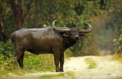 印度馬納斯野生生物保護區的水牛