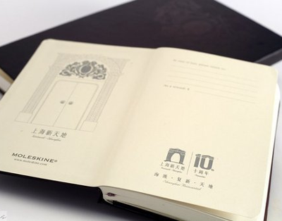 上圖這個筆記本,由傳奇筆記本品牌Moleskine為慶祝上海新天地開幕10年而特別設計,而上海新天地專柜也是Moleskine今年三月在全球開設的第一家零售專柜。Moleskine新天地10周年限量版筆記本共分口袋型橫間筆記本和大型純白筆記本兩種款式,經典黑色封面均印上石庫門標志式的門楣雕花,扉頁印有上海新天地的10周年標志,還附送一本石庫門風情圖片的小冊子。售價分別為口袋型橫間筆記本RMB315,大型純白筆記本RMB390,8月起售。