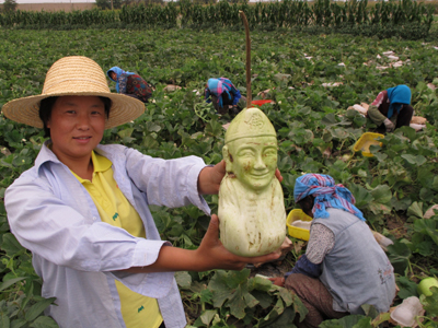 甘肅省武威市農業科學院技術人員通過技術手段成功探索出藝術葫蘆的種植生產方法,使葫蘆這一農作物通過陰干、噴漆等工藝程序成為工人們收藏觀賞的藝術品。 圖為甘肅武威一位農業技術人員展示已經成熟的藝術葫蘆。新華社發