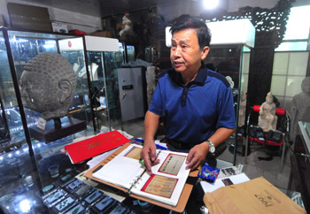他介紹說,自己的父親生前保存了大批辛亥革命時期的文物,自己又畢一生之力保護和收集,他收藏的辛亥文物超過1500件,如刻有“民國十年,孫文”字樣的鎏金梅花劍、據稱為孫中山就任臨時大總統時所戴綬帶、黎元洪1912年準備送給孫中山的“天下為公”紅木匾額等等。