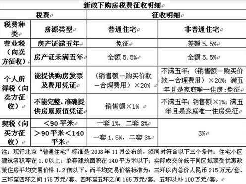 另外,我愛我家社區專家提醒購房者,上表中賣掉小戶型所涉及的稅費是按照出售房屋定義為普通住宅,而購置大戶型時的契稅是按照非普通住宅計算的。具體的稅費征收明細請看下表: