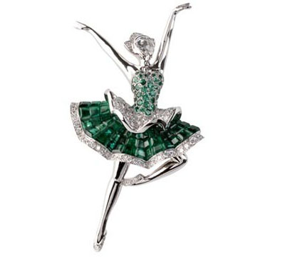 這一次在米蘭La Scala歌劇院秀出的的不再是芭蕾舞演員明星,而是如假包換的鉆石,紅寶石及翡翠,Van Cleef &Arpels芭蕾舞Meninas胸針是Claude Arpels向20世紀60年代俄裔美籍的舞蹈指導Geroge Balanchine致敬之作。這些珠寶在從5月12日到26日在米蘭展出。為了助慶這次展覽,Van Cleef &Arples 會在位于米蘭Via Verri 10的精品店展出一系列的女芭蕾舞演員胸針。