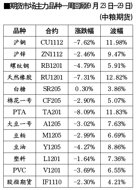 期貨市場主力品種一周回顧[9月23日-9月29日]