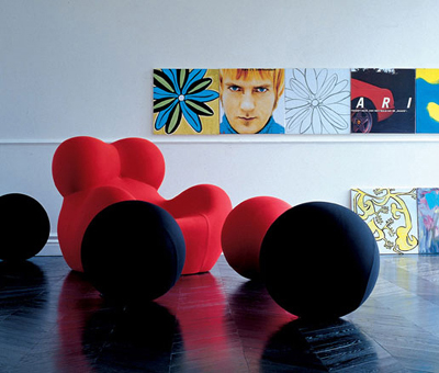 意大利設計師蓋塔諾-佩斯加設計的UP沙發,因為圓滾滾的沙發加上圓形腳凳,能夠包容任何人的身體,這個沙發組合成為名副其實的經典設計。它們的全稱為UP