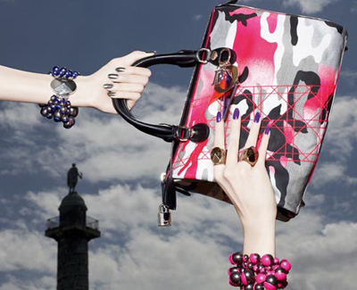 黃金金屬色,溫暖的迷彩色調,Lady Dior的版型,傾斜的縫合法,Dior與現代藝術家Anselm Reyle一起合作,共同設計而成的Dior限量版手袋,將于今年12月初在巴塞爾藝術店亮相,然后于2012年1月份在Dior專賣店面向全世界銷售。