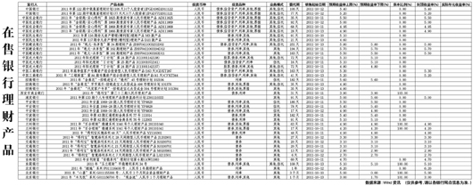 在售銀行理財產品[2011-10-14]