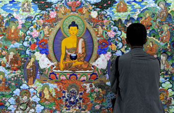 近日,青海熱貢唐卡藝術展在西安大唐西市博物館舉行。記者 劉瀟