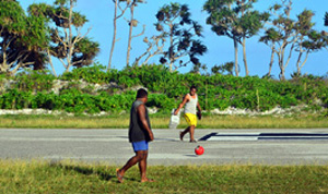 這樣一改就帶來了許多問題,因為人們會隨時隨地橫穿機場跑道。這難道不是一件挺危險的事情嗎?因為兩條道路都在機場內,中間只隔了一條綠化隔離帶,而全國大部分人口又都居住在機場兩側。好在這里一個星期只有兩班飛機,而且島國也沒什么大型機車,這里的主要交通工具是摩托車,所以汽車還不至于把飛機“絆倒”。