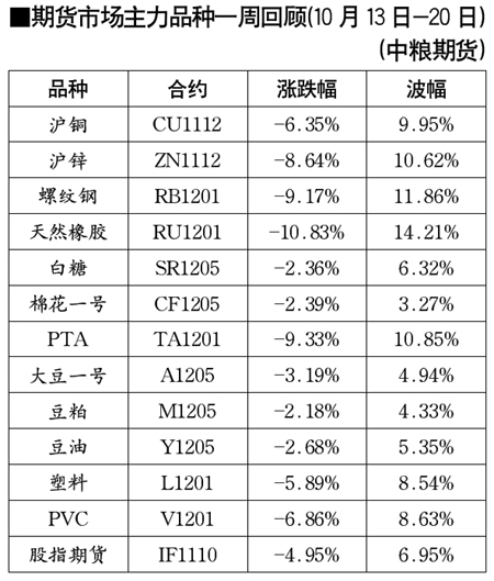 期貨市場主力品種一周回顧[2011.10.13-2011.10.21]