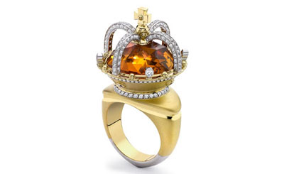 平民百姓也許無法擁有與皇后一樣的華麗珠寶,但Theo Fennell皇室珠寶則足以令你脫穎而出,即使你并不是馬車中王子身邊的那個女孩。 Theo Fennell善于找樂子,這一次,他對風靡全球、大受追崇的皇室婚禮排場表示不屑。對于那些自我感覺配得上金光閃閃的皇室珠寶的人們而言,Theo Fennell提供了皇冠戒指系列供其選擇。對Theo Fennell來說,每件珠寶杰作均是為那些崇尚趣味性以及青睞傳統的人們精心打造的。這些珠寶比茶巾或婚禮杯更有品味。
