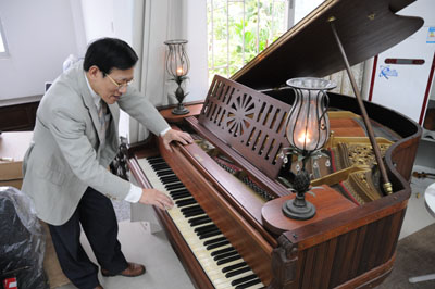 年逾六旬的館主陳恭是福建職業藝術學院的退休教師,年輕時畢業于上海音樂學院樂器制造專業,他會制造樂器,尤其擅長修復古董樂器。陳恭說:“我從事樂器研究、制作、維修已幾十年,積累了大量樂器制造、歷史和文化方面的知識,我收藏這些樂器,就是為了要讓更多的人感受到樂器文化的美好!眻D為陳恭收藏的具有130多年歷史、純手工制造的德國漢諾威鋼琴。