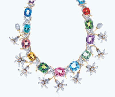 TIFFANY的設計師認為,自然界是最好的珠寶設計師,TIFFANY的設計師們從來善長于運用自然元素,為TIFFANY的追隨者們帶來無數的驚喜。集合了來自世界各地的所有16顆彩色寶石的茉莉花項鏈,是TIFFANY設計師、寶石詩人Jean Schlumberger的杰作,9朵茉莉花與16顆炫麗寶石相映成趣,想像著9朵茉莉花繞于頸間,是否感受到那一陣陣茉莉花香帶來的清雅脫俗?