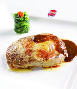 用小火微煎鵝肝,只將鵝肝翻一次面,這樣充分保證了肉質的鮮嫩和營養價值,再配上特制的巧克力紅酒汁,齒頰留香。