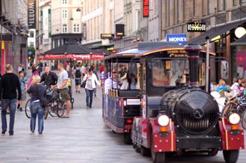 “走街”的一端從哥本哈根市政廳廣場開始,另一端連接著國王新廣場。街道兩旁歷史建筑和現代商業中心鱗次櫛比,聚集了丹麥最好的教堂、噴泉、書店、咖啡廳、精品店、各色餐館和世界著名商場。