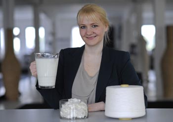 研究期間,多馬斯克測試不同動物的乳汁,包括綿羊、山羊、牛等,結果發現只有牛奶中的酪蛋白適合形成纖維。她說:“牛奶中所含蛋白質有益皮膚,牛奶纖維可以使人的皮膚保持年輕!