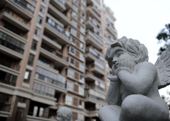受宏觀政策影響,今年1至10月份江西房地產開發投資進一步回落,環比1至9月回落3.4個百分點,商品房銷售持續下滑。圖為南昌市紅谷灘新區一處商品房樓盤前的雕塑。記者