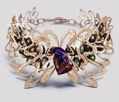 “Sea Duchess”項鏈是Larry Jewelry最新系列“Sea of Colours”中的經典之作,靈感來自傳說中珍奇靈動的海洋生物蛟龍,其設計不但展現出新穎婉約的動人線條,正中更鑲嵌珍貴罕見的50.73克拉雙色紫黃晶寶石,伴以24顆南洋黑珍珠、216顆約7.46克拉的啡鉆及500顆約4.32克拉的白鉆。