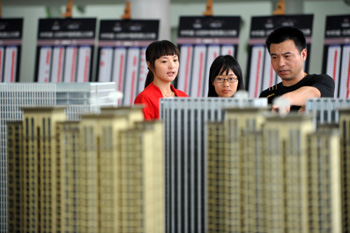 在合肥某樓盤銷售現場,幾名市民在挑選房型。新華社記者 劉軍喜 攝