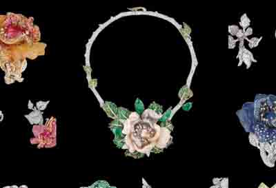 這些花般嬌艷的“花仙子”造型精致優雅、栩栩如生,每一件都以20世紀50年代的一場傳奇舞會命名,并且正在潛心準備那一個個美妙的夜晚。絢麗的顏色訴說 著她們的故事,又或者泄露出她們的心事,時而天真、時而灑脫、時而浪漫,時而又似墜入愛河。Dior本系列堪稱是高級定制女裝與高檔珠寶的完美邂逅。這些迪奧玫瑰的花瓣由精致柔軟的綢緞面料打造而成,而環繞著它們的寶石則如華美刺繡般點綴著花瓣。