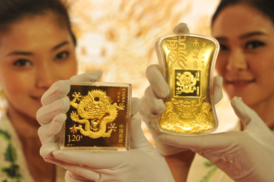 據悉,此套金磚以2012生肖龍郵票為主圖案,采用Au.999純金,運用浮雕、磨砂和鏡面等貴金屬加工工藝,按郵票等大(等比)尺寸鑄造,一組五款:分別為10克、30克、50克、100克、500克,最大發行量分別為1萬錠、1萬錠、5000錠、2000錠和350錠。每錠郵票金磚都刻有惟一收藏編號,并配發收藏證書一本,從而充分保證金磚發行的惟一性及權威性。據悉,中國集郵還將同時發行壬辰年《本命金》、《本命銀》兩款超大規格本命貴金屬藏品。